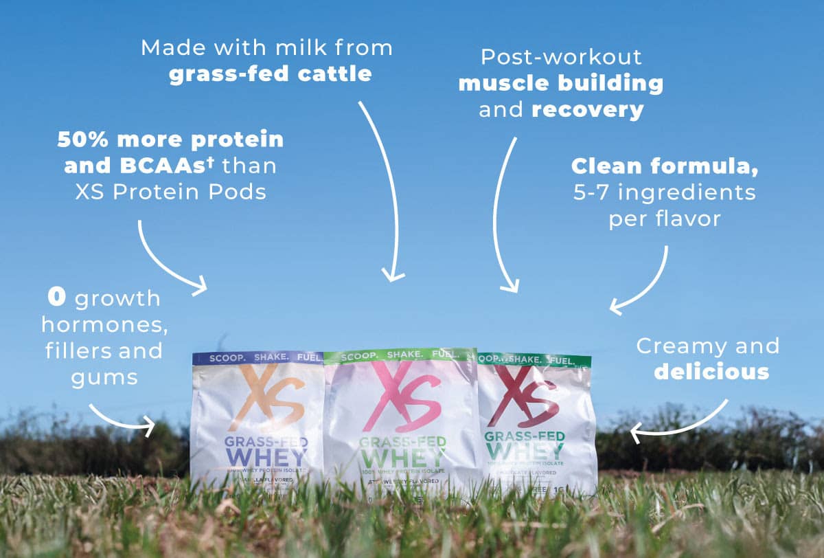 DYK whey protein is the #1 consumed Sports Nutrition product in North America? Our new XS Grass-Fed Whey Protein Powder may check a lot of your boxes. It replaces our previous XS Protein Pods with 50% more protein + a 57% increase in BCAAs. It helps build lean muscle with 30g of premium whey protein + 6.9g of Branched Chain Amino Acids (BCAAs).